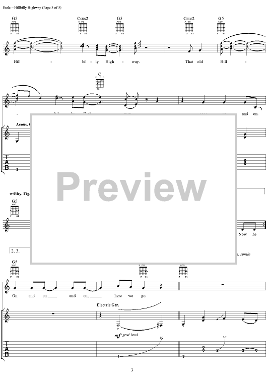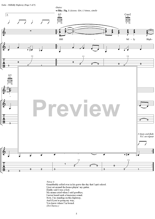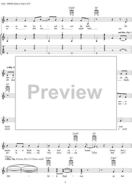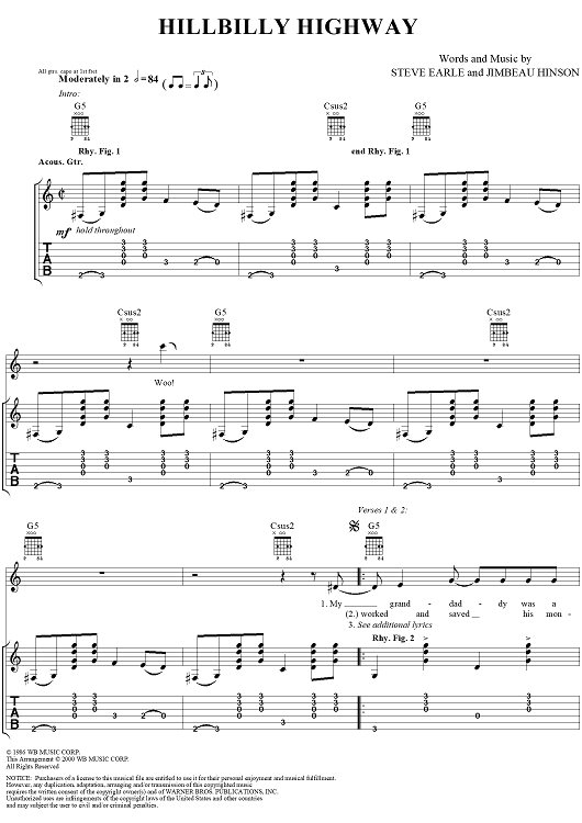 "Hillbilly Highway" Sheet Music by Steve Earle