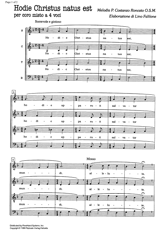 Digital Sheet Music for Hodie Christus Natus Est by , Lino Falilone, Costanzo Roncato scored for SATB Choir; id:331914