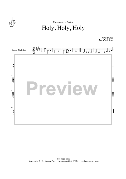 Digital Sheet Music for Holy, Holy, Holy - Cornet 2 in B-flat by Paul Bara, John Bacchus Dykes scored for Brass Quartet; id:317123