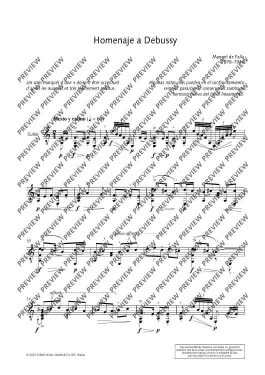 "Homenaje a Debussy" Sheet Music by Manuel de Falla