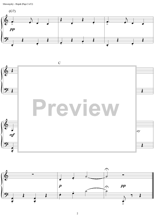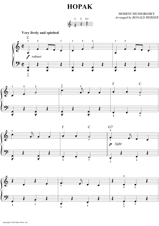 Digital Sheet Music for Hopak by Ronald Herder, Modest Musorgsky scored for Easy Piano; id:284875