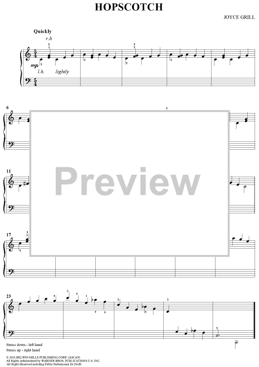 Digital Sheet Music for Hopscotch by Joyce Grill scored for Easy Piano; id:287277