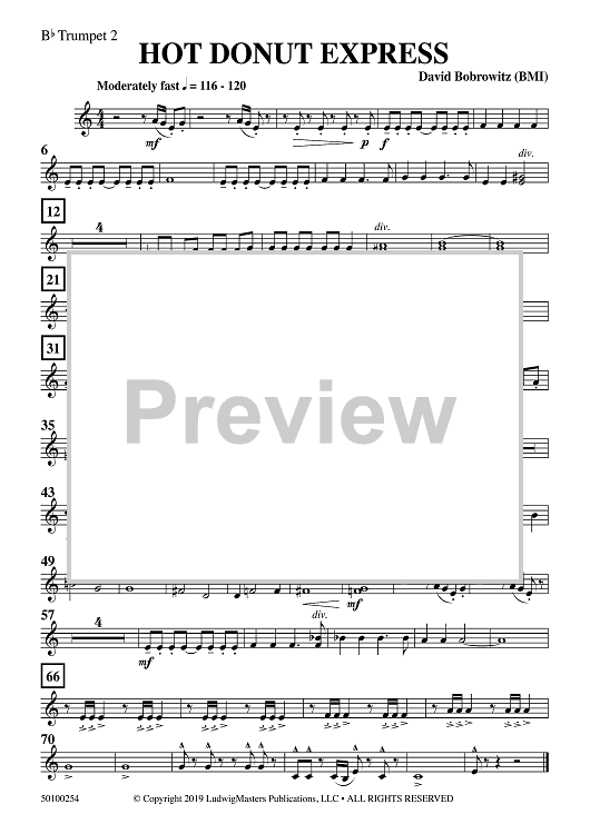 "Hot Donut Express - Bb Trumpet 2" Sheet Music by David Bobrowitz