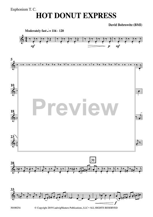 Digital Sheet Music for Hot Donut Express - Euphoniums TC/BC by David Bobrowitz scored for Concert Band; id:509054