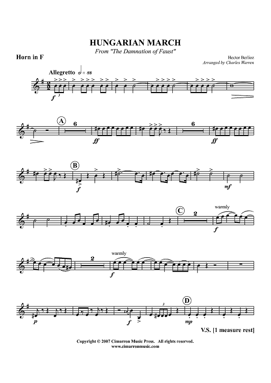 "Hungarian March from "The Damnation of Faust" - Horn in F" Sheet Music by Hector Berlioz
