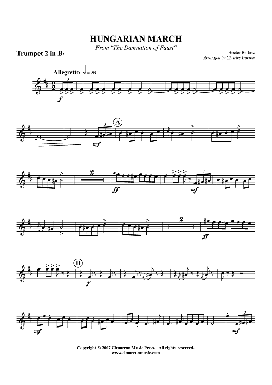 "Hungarian March from "The Damnation of Faust" - Trumpet 2 in Bb" Sheet Music by Hector Berlioz