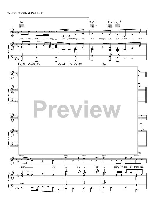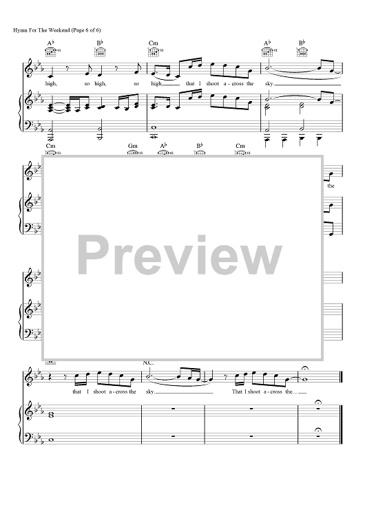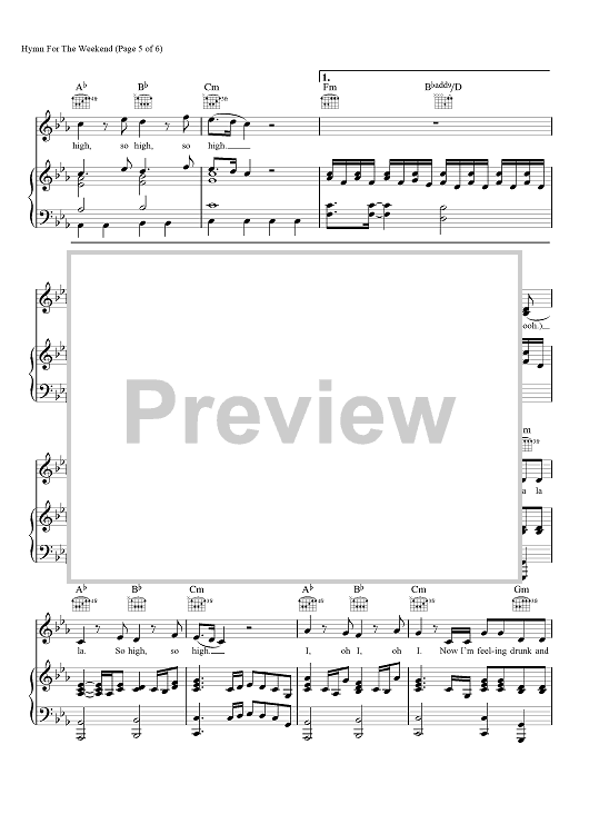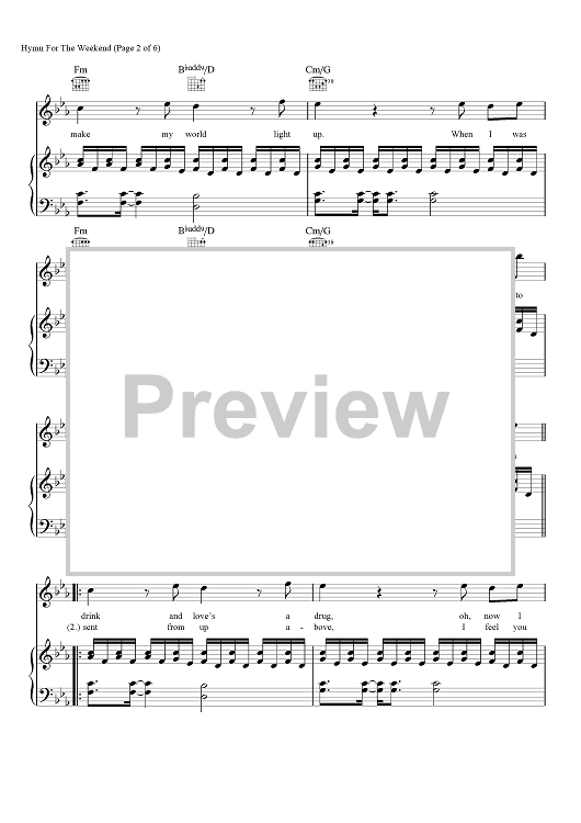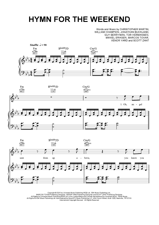 Digital Sheet Music for Hymn for the Weekend by Chris Martin, Coldplay, Jonny Buckland, Guy Berryman, Tor Hermansen, Mikkel Eriksen, Marcos Tovar, Venor Yard, Scott Zant scored for Piano/Vocal/Chords; id:457143