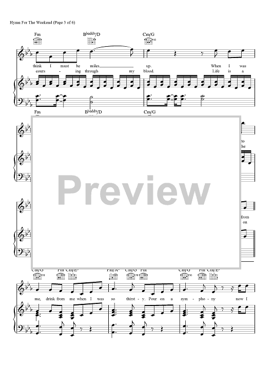 "Hymn for the Weekend" Sheet Music by Coldplay