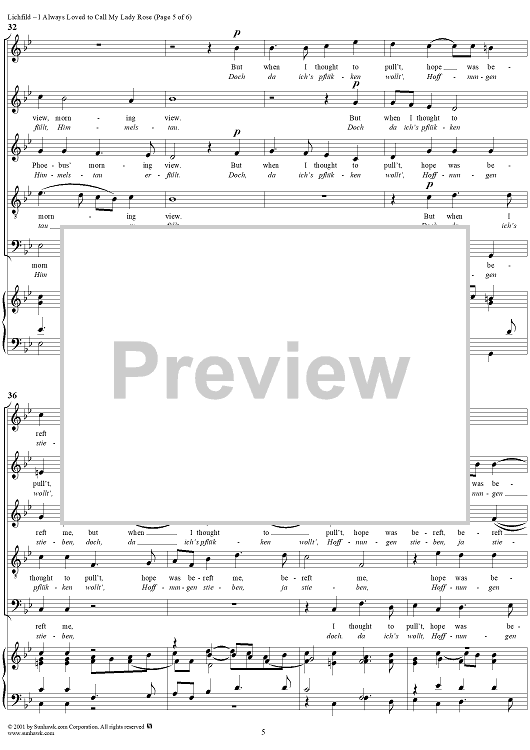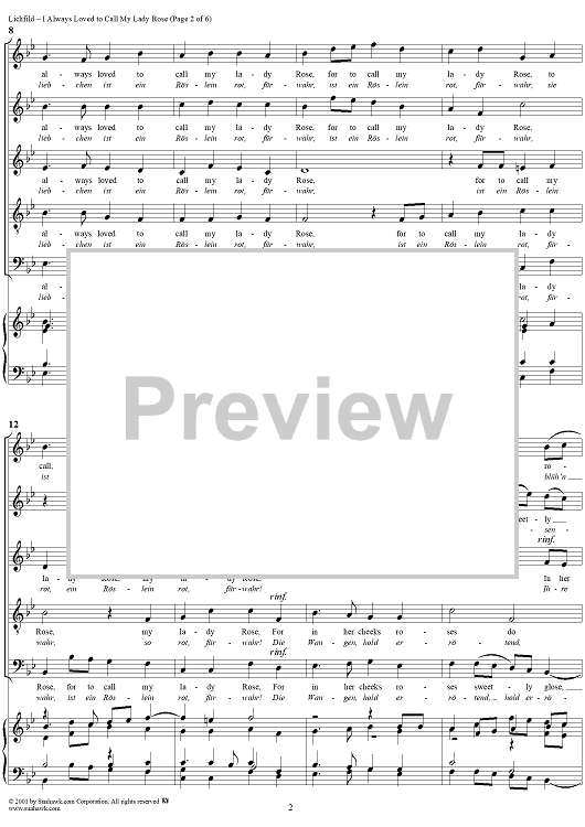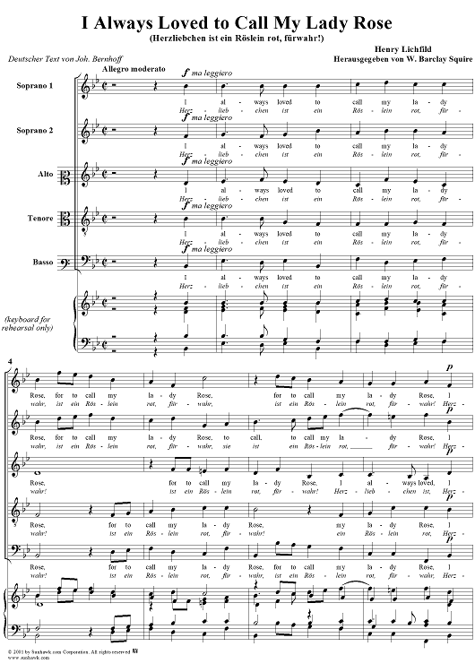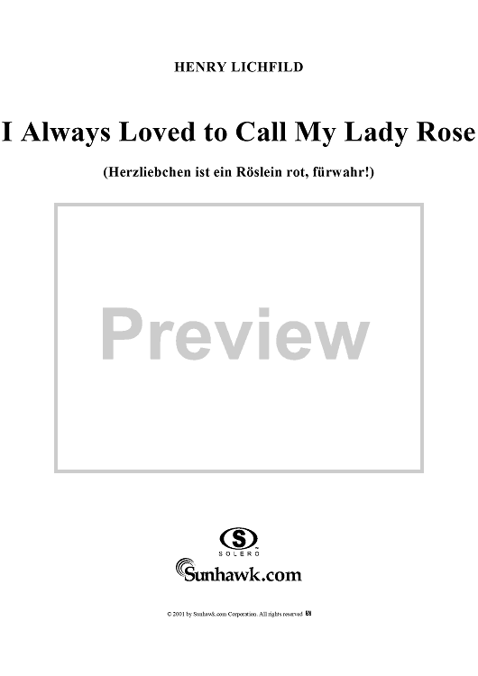 Digital Sheet Music for I Always Loved to Call My Lady Rose by Henry Lichfild scored for Mixed Chorus; id:250722