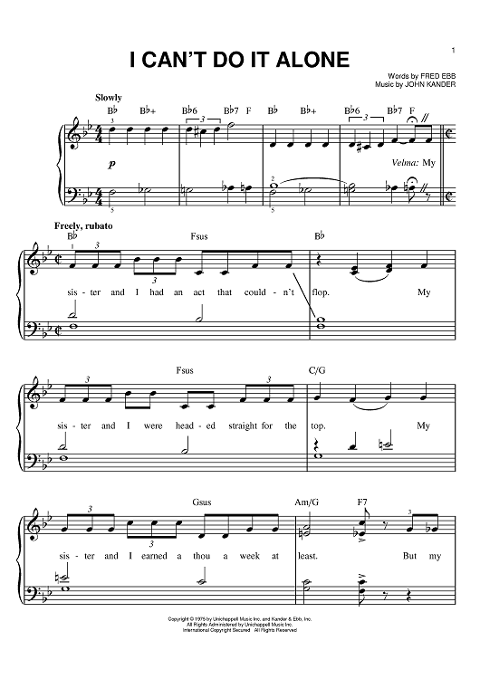 Digital Sheet Music for I Can't Do It Alone by John Kander, Fred Ebb scored for Easy Piano; id:371588