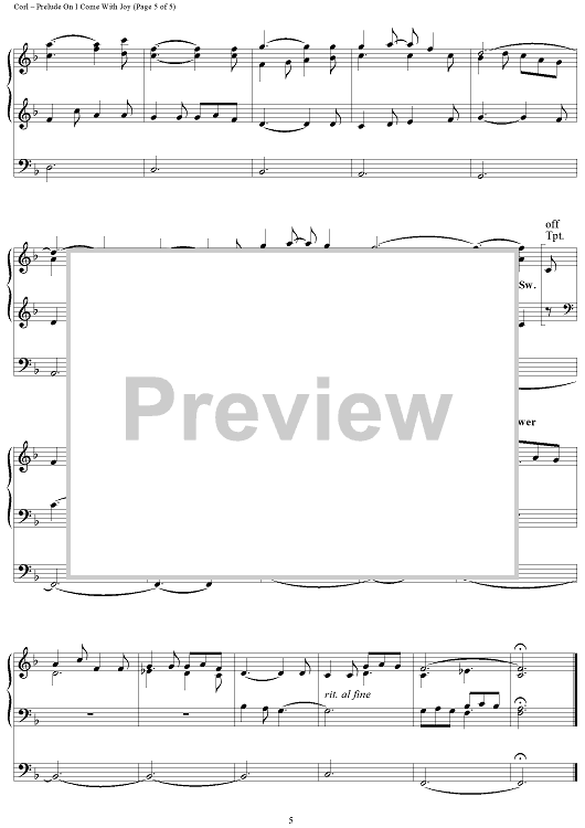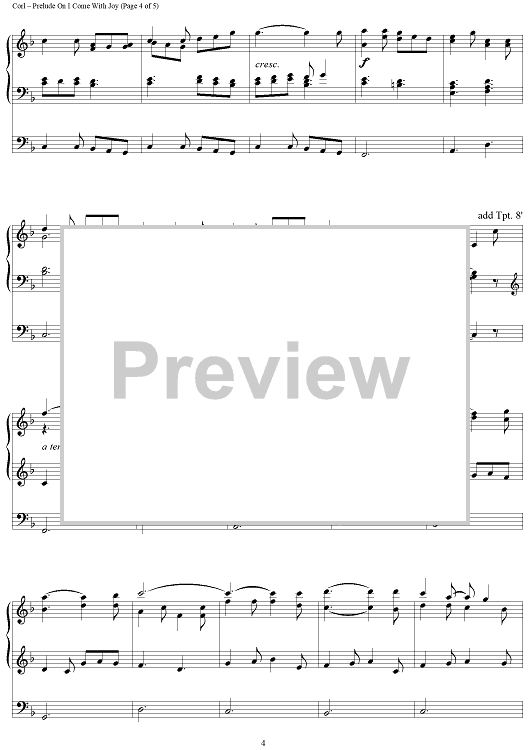 Digital Sheet Music for I Come With Joy (Prelude on) by Matthew H. Corl scored for Organ Solo; id:272493