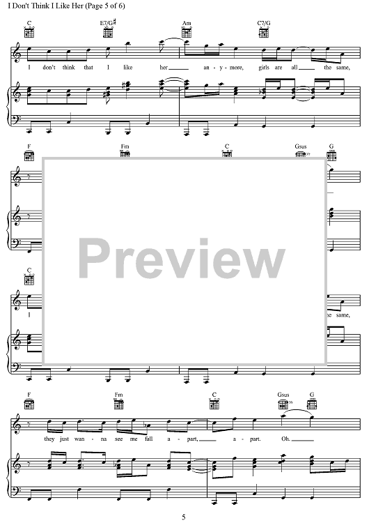 "I Don't Think I Like Her" Sheet Music by Charlie Puth