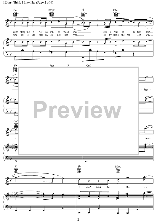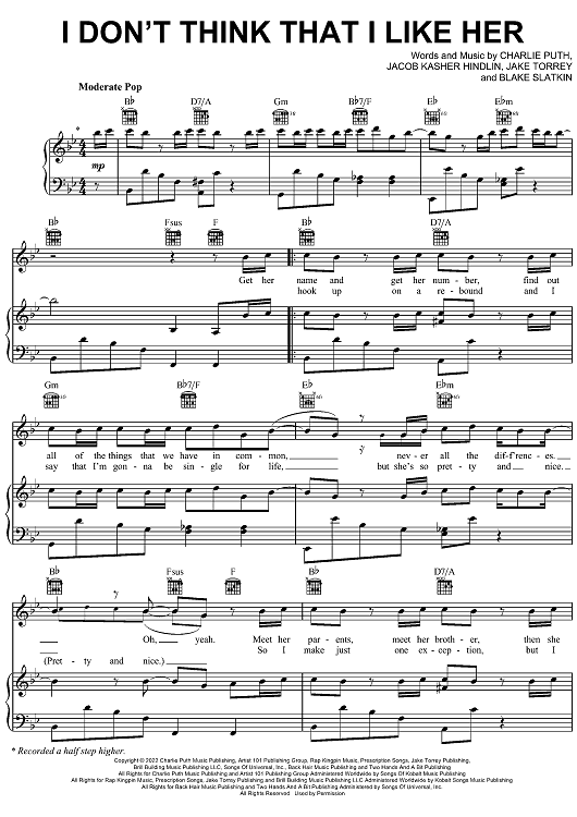 Digital Sheet Music for I Don't Think I Like Her by Jacob Hindlin, Charlie Puth, Blake Slatkin, Jake Torrey scored for Piano/Vocal/Chords; id:497949