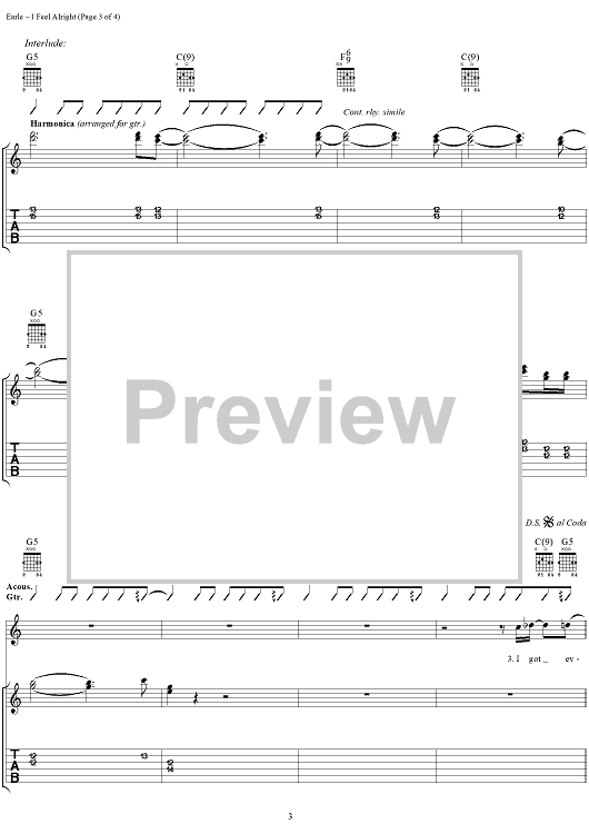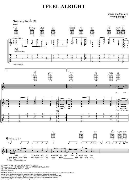 "I Feel Alright" Sheet Music by Steve Earle