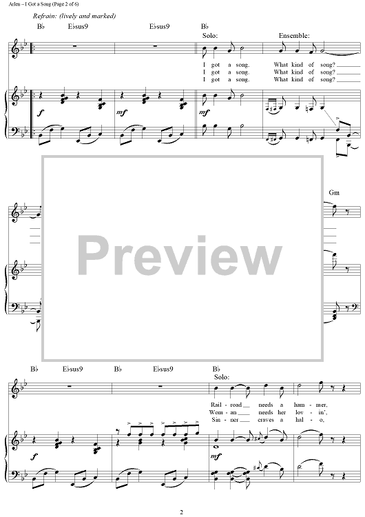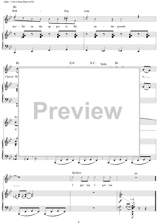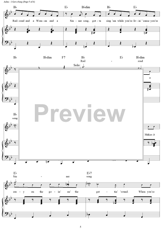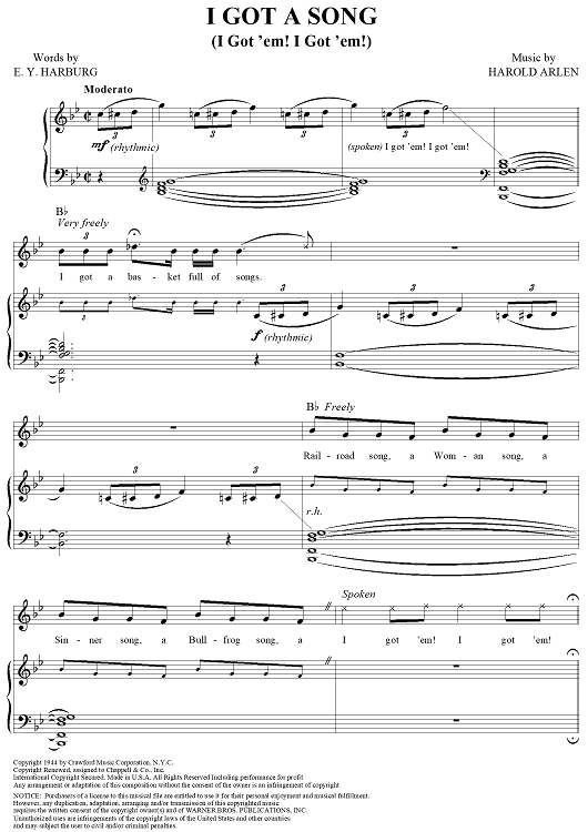 Digital Sheet Music for I Got a Song by Harold Arlen, E.Y. "Yip" Harburg scored for Piano/Vocal/Chords; id:355921