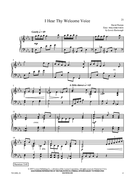 Digital Sheet Music for I Hear Thy Welcome Voice by David Paxton, Lewis Hartsough scored for Piano Solo; id:433564