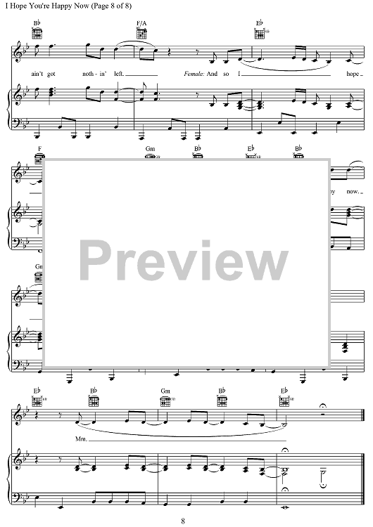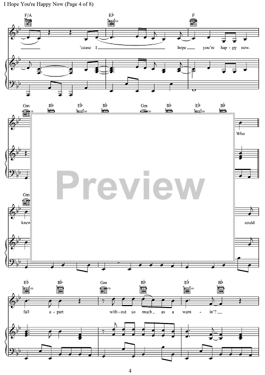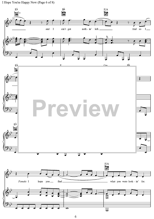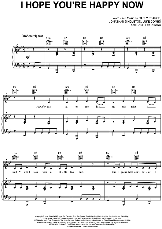 Digital Sheet Music for I Hope You're Happy Now by Jonathan Singleton, Lee Brice, Carly Pearce, Luke Combs, Randy Montana scored for Piano/Vocal/Chords; id:468435