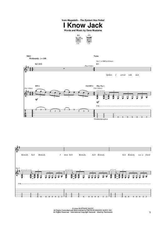 Digital Sheet Music for I Know Jack by Megadeth, Dave Mustaine scored for Guitar Tab; id:384917