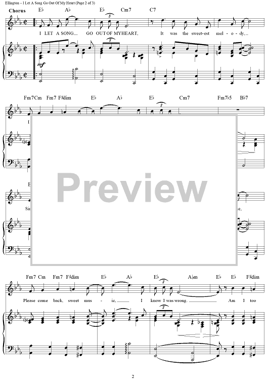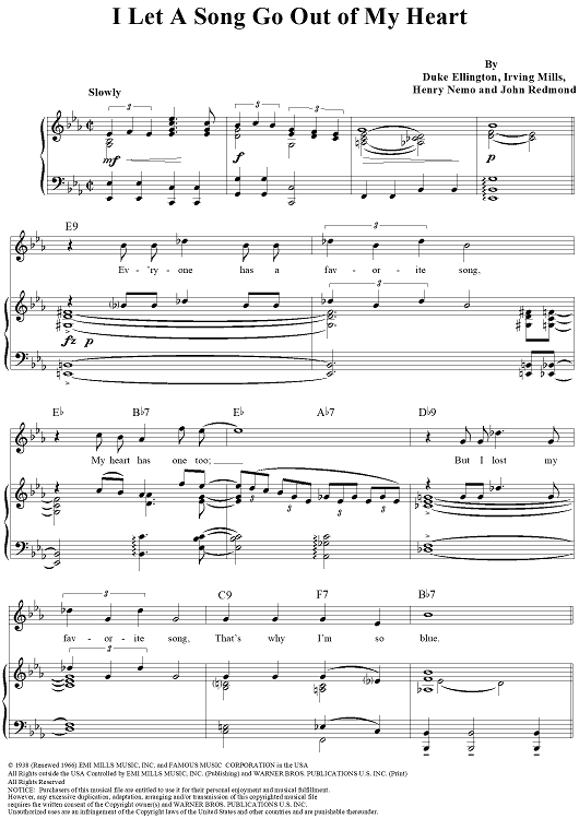 Digital Sheet Music for I Let A Song Go Out Of My Heart by Duke Ellington, Irving Mills, Henry Nemo, John Redmond scored for Piano/Vocal/Chords; id:110694