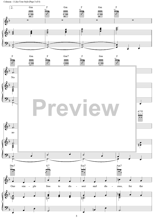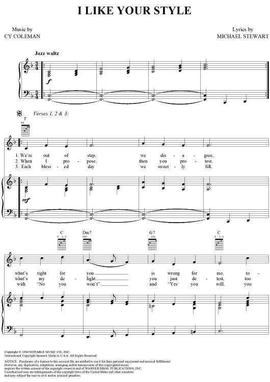 Digital Sheet Music for I Like Your Style by Cy Coleman, Michael Stewart scored for Piano/Vocal/Chords; id:314554