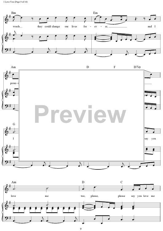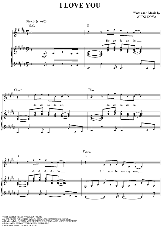 Digital Sheet Music for I Love You by Celine Dion, Aldo Nova scored for Piano/Vocal/Chords; id:112023