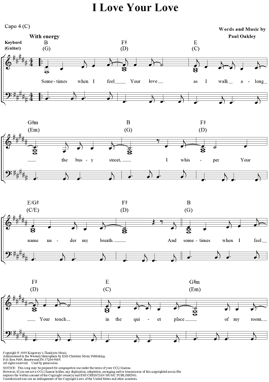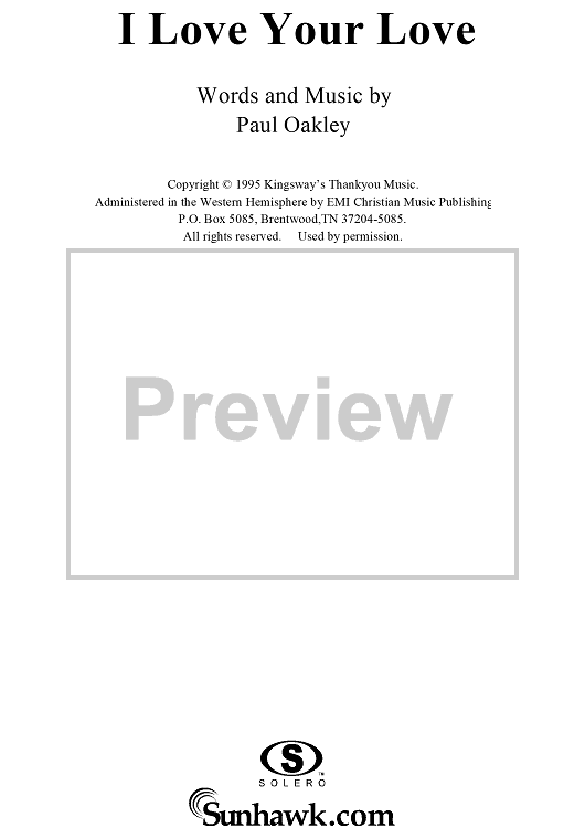 Digital Sheet Music for I Love Your Love by Paul Oakley scored for Piano/Vocal/Chords; id:113714