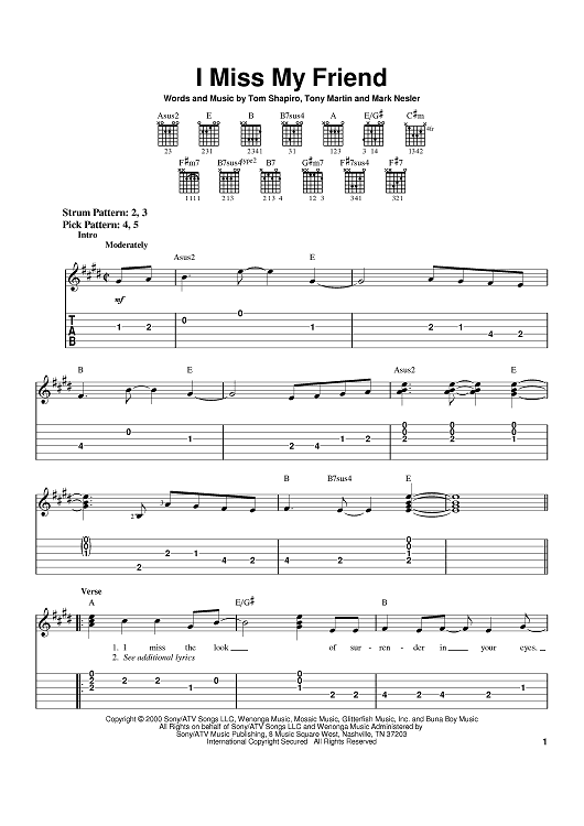 Digital Sheet Music for I Miss My Friend by Tony Martin, Mark Nesler, Tom Shapiro, Darryl Worley scored for Easy Guitar Tab; id:370789
