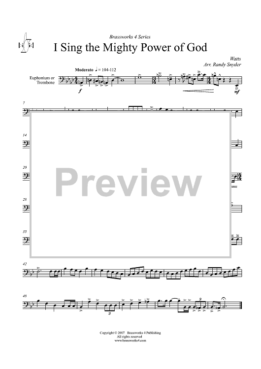 Digital Sheet Music for I Sing the Mighty Power of God - Euphonium BC or Trombone by Isaac Watts, Randy Snyder scored for Brass Quartet; id:361064
