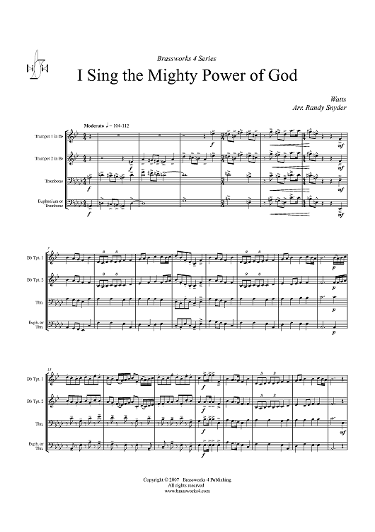 Digital Sheet Music for I Sing the Mighty Power of God - Score by Isaac Watts, Randy Snyder scored for Brass Quartet; id:361059