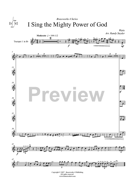 Digital Sheet Music for I Sing the Mighty Power of God - Trumpet 1 in B-flat by Isaac Watts, Randy Snyder scored for Brass Quartet; id:361060