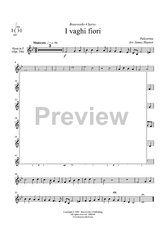 Digital Sheet Music for I Vaghi Fiori - Horn in F by Giovanni Pierluigi da Palestrina, James Haynor scored for Brass Quartet; id:411225