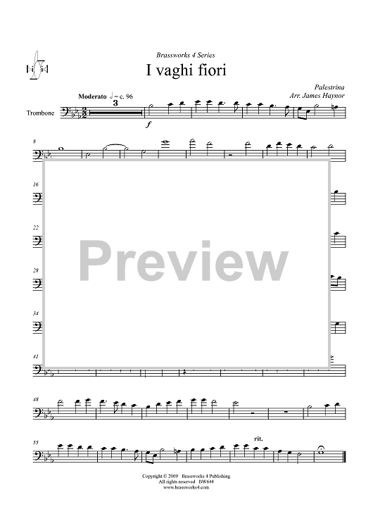 Digital Sheet Music for I Vaghi Fiori - Trombone by Giovanni Pierluigi da Palestrina, James Haynor scored for Brass Quartet; id:411226