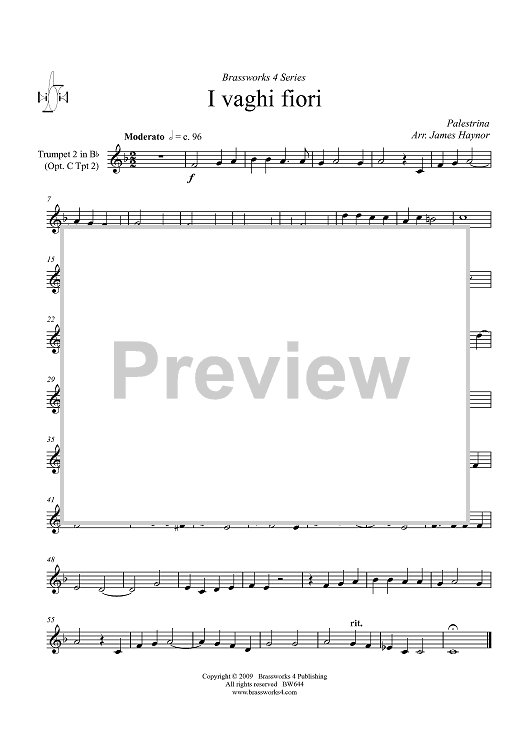 Digital Sheet Music for I Vaghi Fiori - Trumpet 2 in B-flat by Giovanni Pierluigi da Palestrina, James Haynor scored for Brass Quartet; id:411224