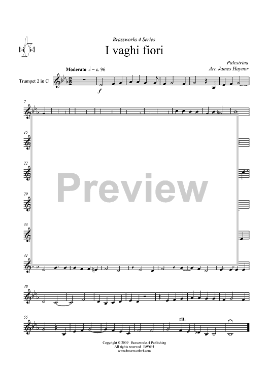 Digital Sheet Music for I Vaghi Fiori - Trumpet 2 in C by Giovanni Pierluigi da Palestrina, James Haynor scored for Brass Quartet; id:411222