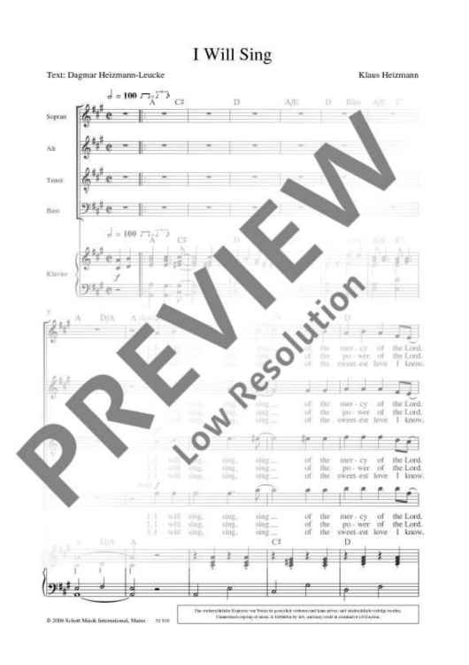 Digital Sheet Music for I Will Sing by Klaus Heizmann scored for Mixed Choir (satb) And Piano; id:493643
