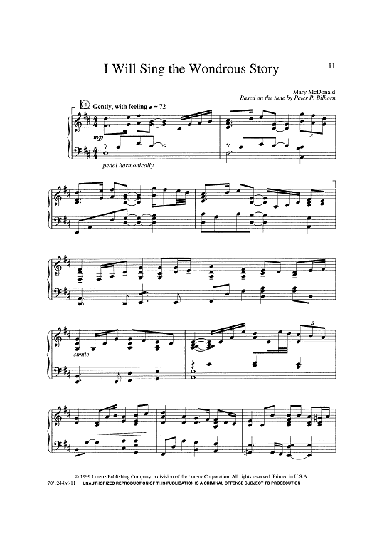 Digital Sheet Music for I Will Sing the Wondrous Story by Mary McDonald, Peter B. Bilhorn scored for Piano Solo; id:433931