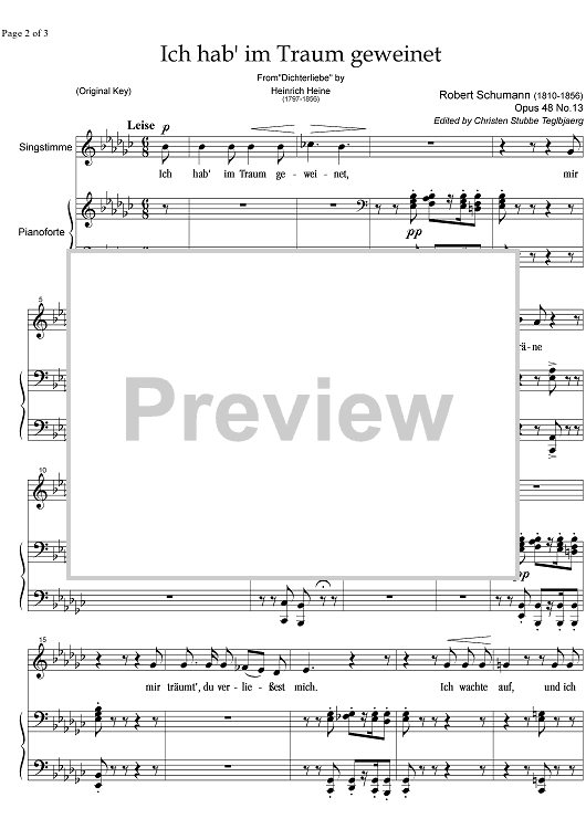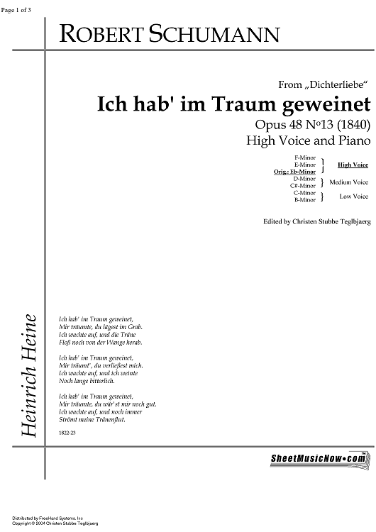 Digital Sheet Music for Ich hab' im Traum geweinet Op.48 No.13 by , Robert Schumann scored for Soprano or Tenor/Piano; id:343346