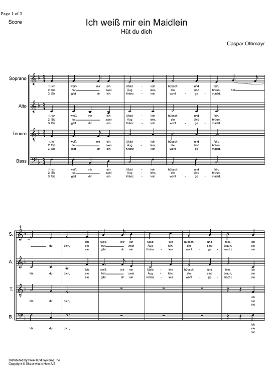 Digital Sheet Music for Ich weiss mir ein Maidlein by Caspar Othmayr scored for SATB Choir; id:325878
