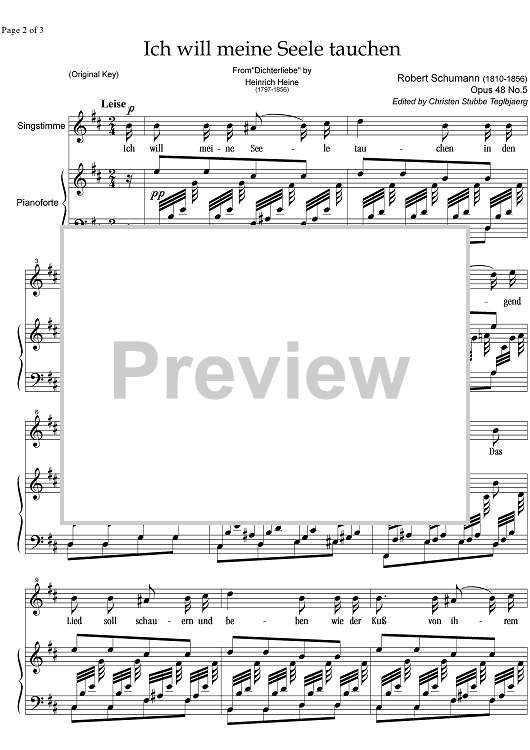 Digital Sheet Music for Ich will meine Seele tauchen Op.48 No. 5 by , Robert Schumann scored for Soprano or Tenor/Piano; id:343339