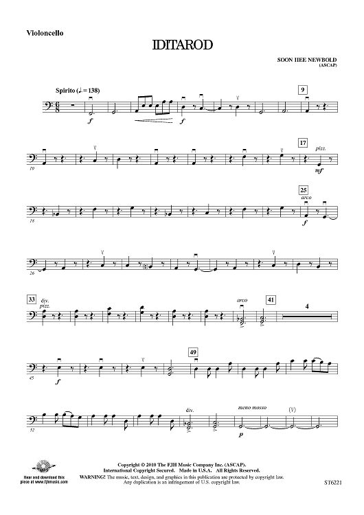 "Iditarod - Violoncello" Sheet Music by Soon Hee Newbold