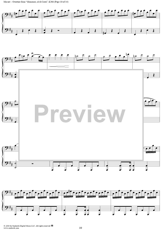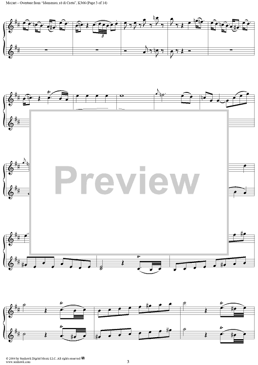 Digital Sheet Music for Idomeneo, Overture, K366 by Wolfgang Amadeus Mozart scored for 1 Piano, 4 Hands; id:295558