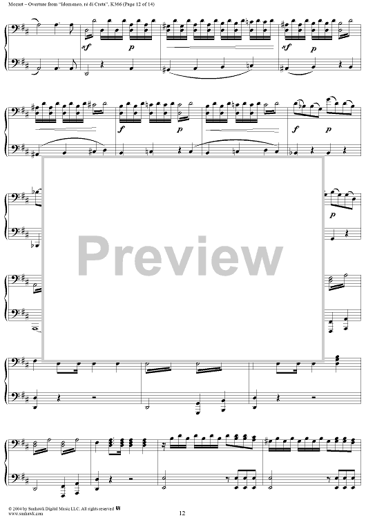 "Idomeneo, Overture, K366" Sheet Music by Wolfgang Amadeus Mozart