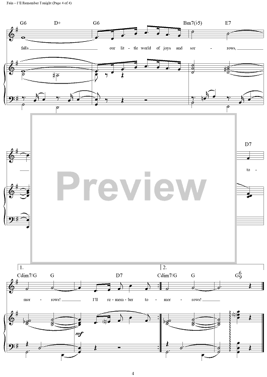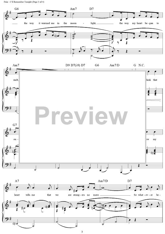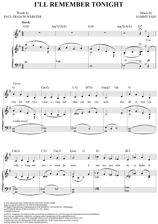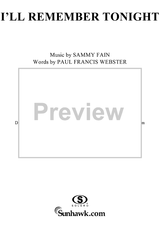 Digital Sheet Music for I'll Remember Tonight by Sammy Fain, Paul Francis Webster scored for Piano/Vocal/Chords; id:305470