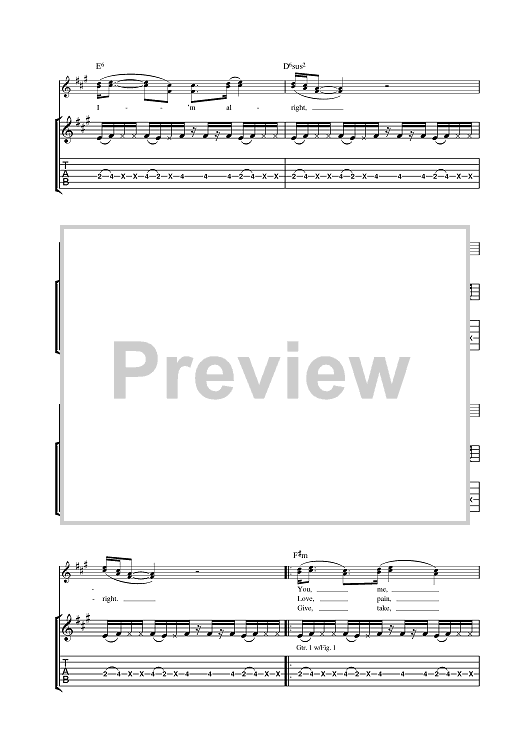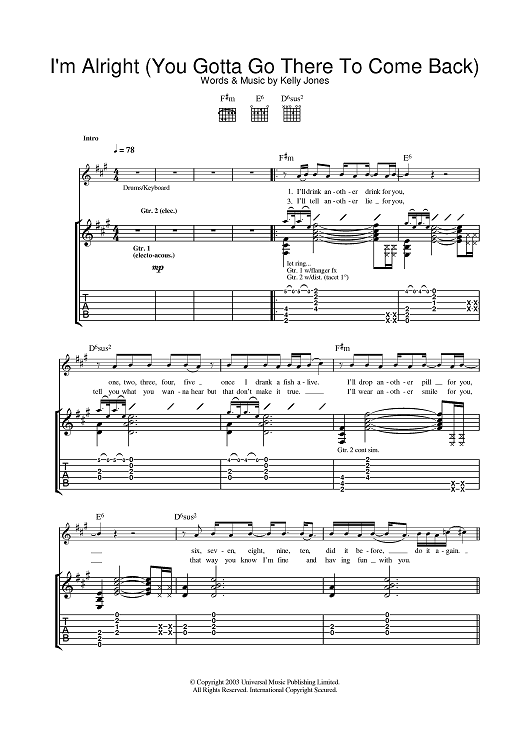 Digital Sheet Music for I'm Alright (You Gotta Go There To Come Back) by Stereophonics scored for Guitar Tab; id:378090