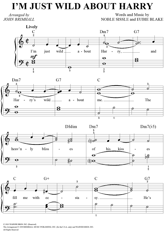 Digital Sheet Music for I'm Just Wild About Harry by Judy Garland, Al Jolson, Eubie Blake, Noble Sissle, Mickey Rooney, John Brimhall scored for Easy Piano/Vocal; id:235771