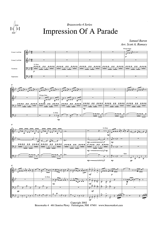 Digital Sheet Music for Impression of a Parade - Score by Scott Ramsey, Samuel Baron scored for Brass Quartet; id:428324