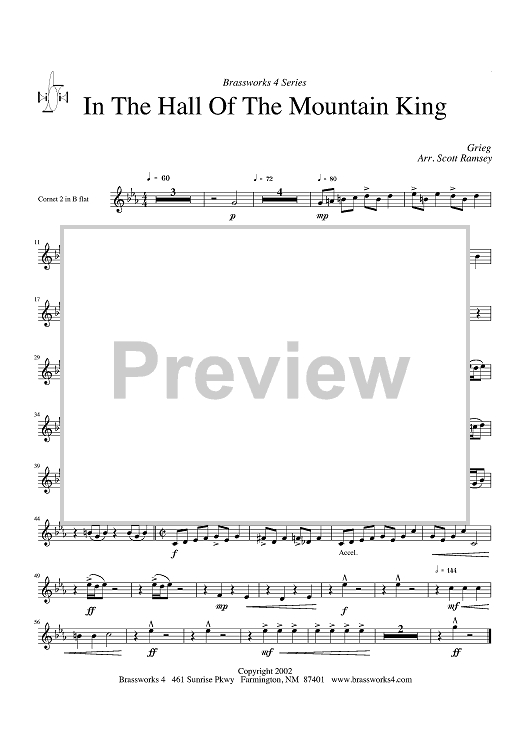 Digital Sheet Music for In the Hall of the Mountain King - Cornet 2/Trumpet 2 by Edvard Grieg, Scott A. Ramsey scored for Brass Quartet; id:316675