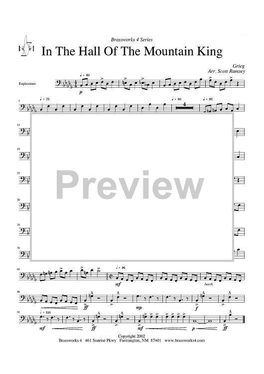 Digital Sheet Music for In the Hall of the Mountain King - Euphonium by Edvard Grieg, Scott A. Ramsey scored for Brass Quartet; id:316678