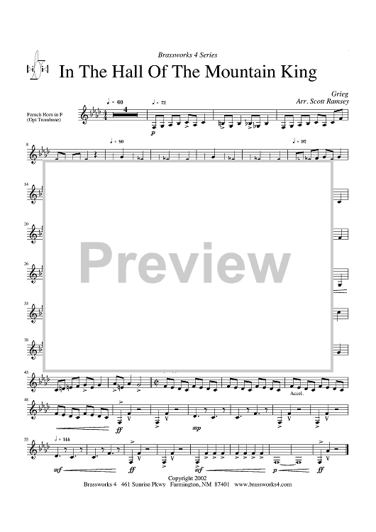 Digital Sheet Music for In the Hall of the Mountain King - Horn in F by Edvard Grieg, Scott A. Ramsey scored for Brass Quartet; id:316677