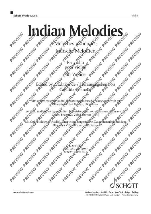 This book presents North and South Indian music in staff notation to whet the appetite of discerning western violin players. The melodies begin at around Grade 4 level, progressing to GCSE and A level music performance material. The explanation of North and South Indian music comes with a variety of ragas and compositions from both systems. Candida Connolly provides an informative introduction to this interesting and beautiful music, including careful explanations of the elaborate ornamentation. The pieces are performed on the accompanying audio download files by Candida and her colleagues from the Bharatiya Vidya Bhavan Centre, London.